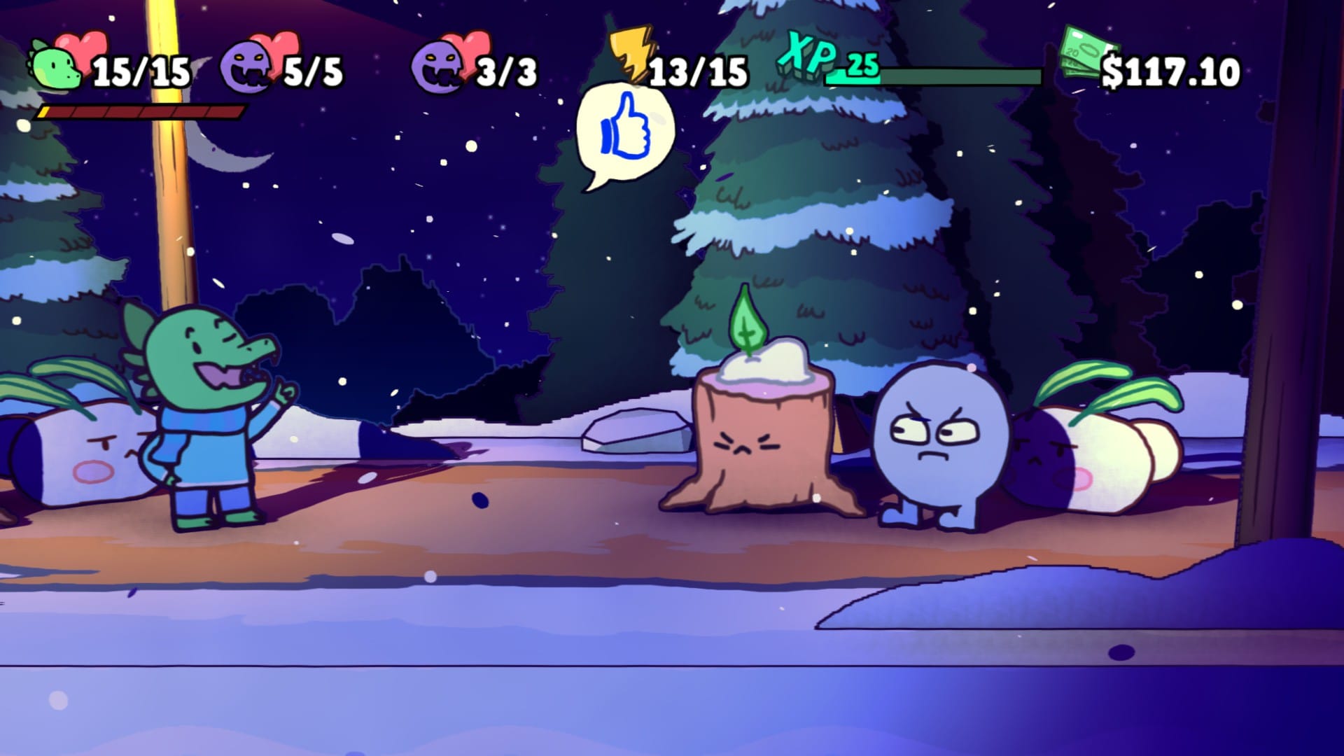 Its turn-based combat, too, is an enthralling loop of attacking and defending with some real-time flourishes. You can shield yourself and attack twice by timing your button tapping right. Your new buddies can level up alongside you, granting you an arsenal of diverse attacks with which to customize your party’s offence. In a way, Untitled Paper RPG also invokes the pastoral fantasy of the Pokemon series; you befriend (collect) critters in combat, and you train them up such that they’re at their fighting fit.