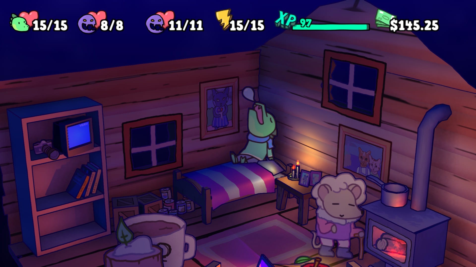 Which is a pity, because the Untitled Paper RPG demo is bursting with personality, its whimsy and mischief bringing to mind the playfulness of Nintendo games. You play as a crocodile who’s writing a birthday card for your feathered friend Ava. While collecting signatures for the card around a sleepy little town, you’re abruptly roped in for an adventure by Ava herself, who’s concerned that a dastardly plot is afoot. You see, several things have been misplaced and, in a quietly amusing scene, a elderly rodent tells Ava that her walking cane was stolen from her cabin. “Can you believe the nerve of some people? Stealing a walking cane from an old lady!!”, she rages on, her paw gripping her cane in anger. That was a spare, actually, but she still implores you to find her original cane nonetheless. Ava is pumped and too keen to oblige, while you trudge along reluctantly.